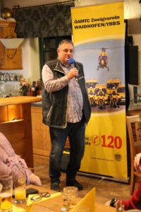 Nach der Begrüßung gab Obmann Anton Durstberger anhand der auf der Website www.touringclub-waidhofen.at unter AKTUELLES, BERICHTE & FOTOS einsehbaren Berichte einen Überblick über die abgehaltenen Veranstaltungen des Jahres 2025. Er hob dabei den E-Bike-Kurs am Eurospar-Parkplatz, den Radausflug nach Lunz mit Besichtigung des Hauses der Wildnis, den Besuch des Finales der Ennstal-Classic in Gröbming hervor. Als besondere Highlights führte er die Besuche des Red Bull Ringes in Spielberg, Abenteuer Erzberg in Eisenerz sowie Christophorus 15 in Ybbsitz an. Weiters präsentierte Anton Durstberger die für das Jahr 2026 geplanten Vorhaben des Clubs. Zu guter Letzt bedankte er sich noch bei seinen Mitarbeitern, ohne die das alles nicht gelingen könnte, insbesondere bei Erna Tatzreiter für Website- und Pressearbeit, bei Harald Laresser und Leopold Schörghuber für Foto, Film und Ton, bei Christiane Gerstner für die Planung der diversen Ausflüge und bei den vielen, die im Hintergrund den Club noch unterstützen.