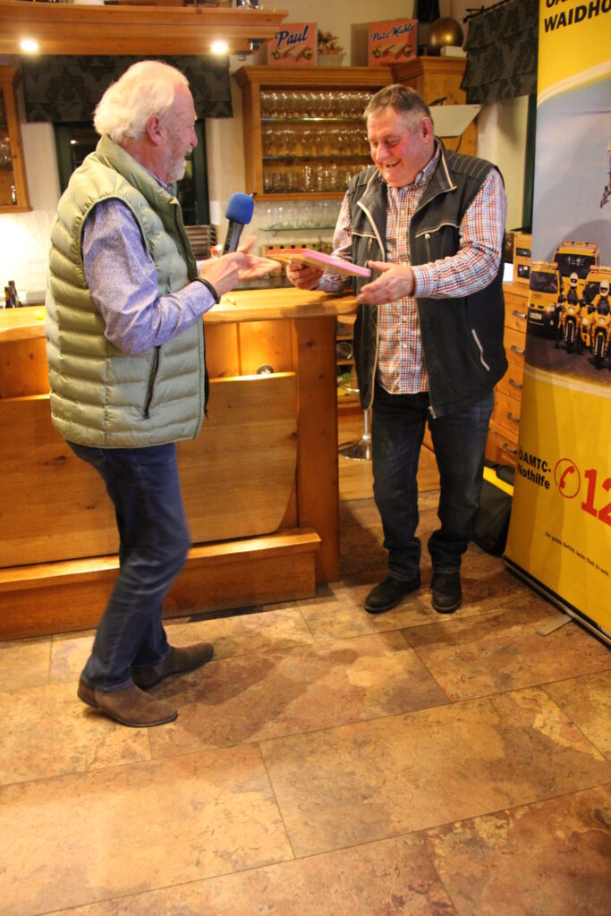 Kurt Hraby ließ es sich nicht nehmen, im Namen aller Anwesenden zunächst Christiane Gerstner als fleißiger Assistentin des Obmannes für ihren großen Einsatz bei Planung und Organisation der durchgeführten Veranstaltungen zu danken und dann auch dem Obmann Anton Durstberger für seinen unermüdlichen Einsatz bei allen 15 Events zuzüglich der bisher 11 Clubabende herzlichen Dank auszusprechen und jedem eine große Tafel Schokolade „merci Finest Selection“ zu überreichen.